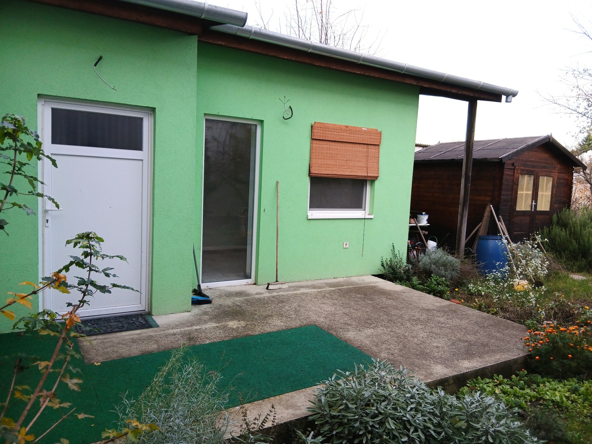 - az udvaron fa szerkezetű tároló